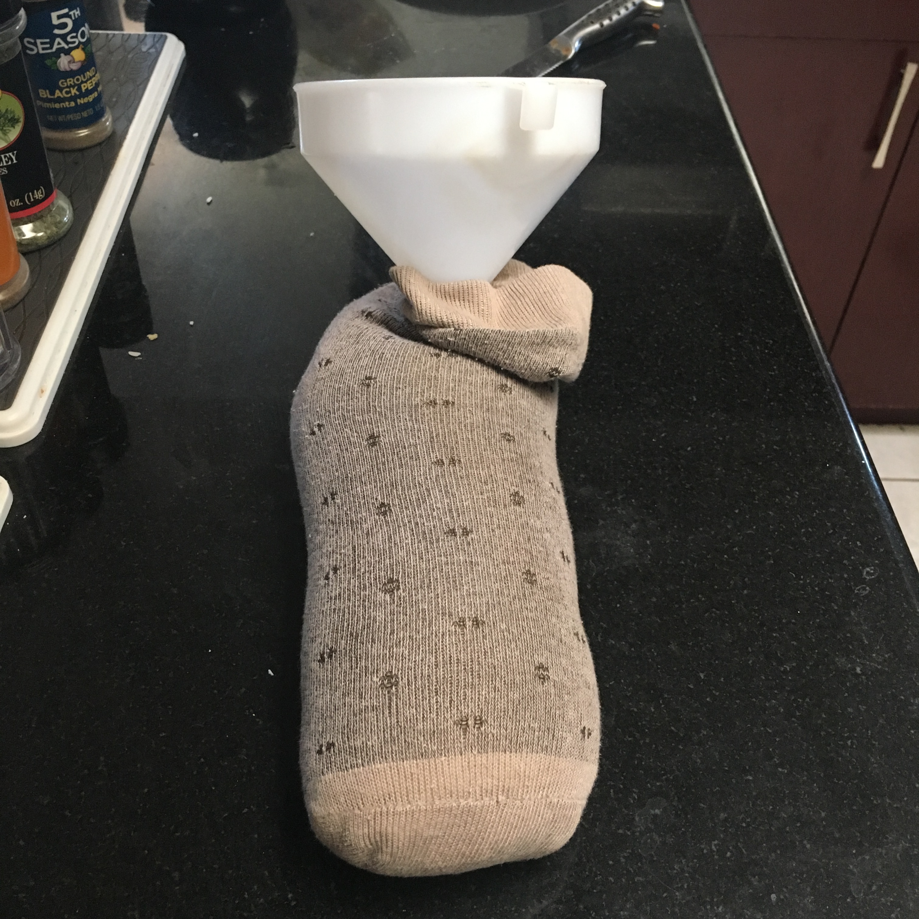 - Fill your cloth container with the filling, you may use a funnel to avoid spills.