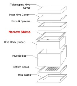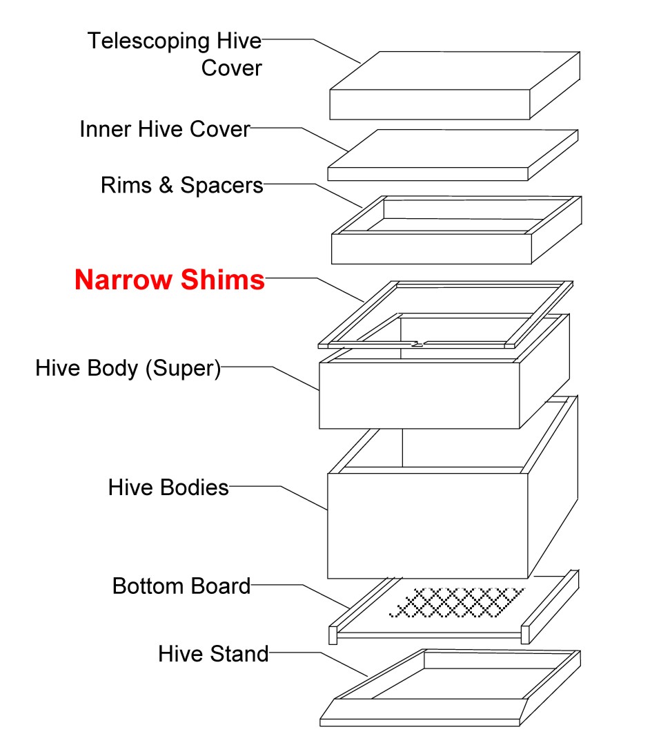 I’m fascinated by your shims. I use similar I call an eke when treating for varroa in autumn. Do you leave them on all summer and do the bees not drawn the frame comb down into them or propolis them up? I put on extra supers for space, using my ekes would be easier!
