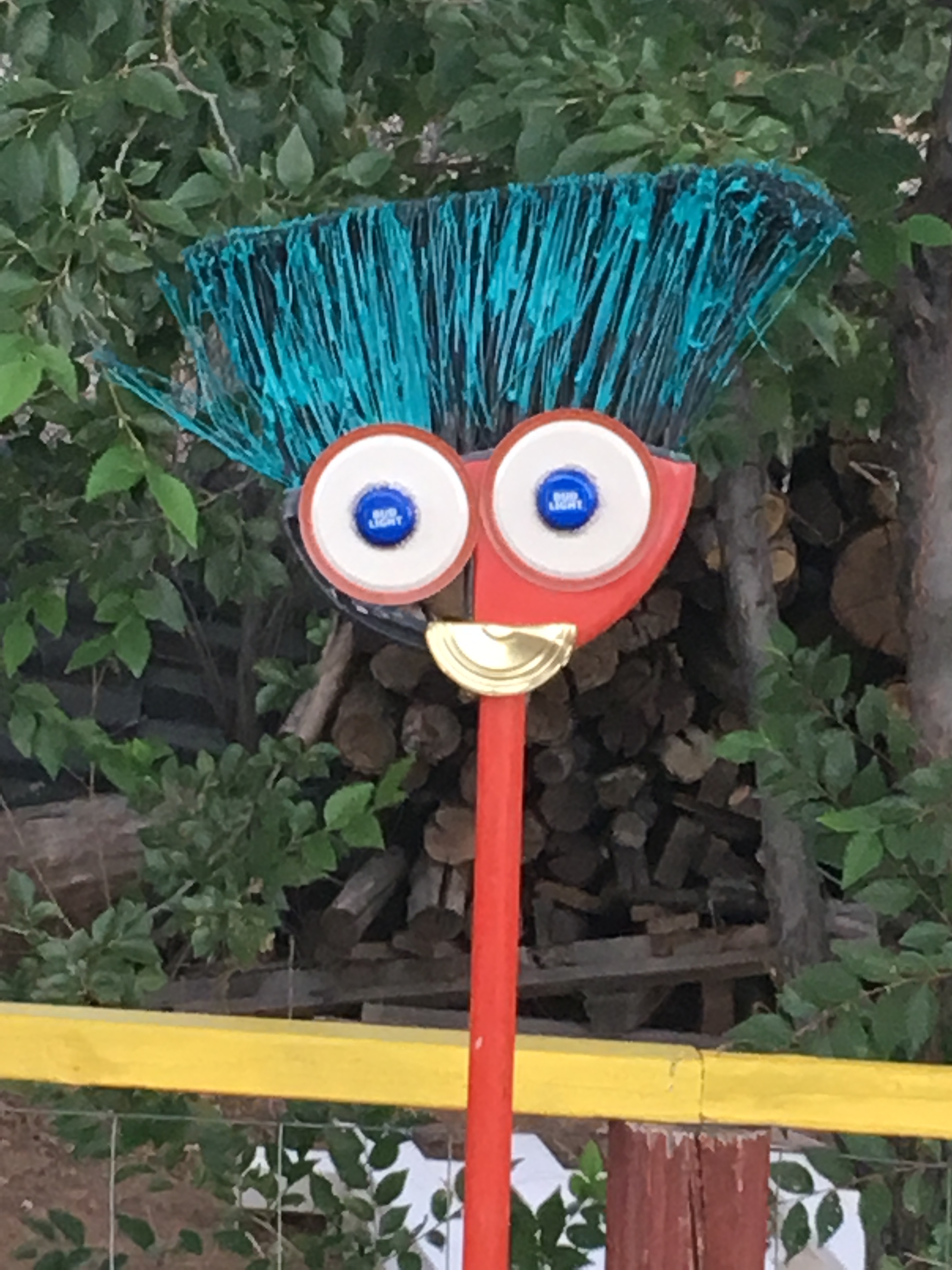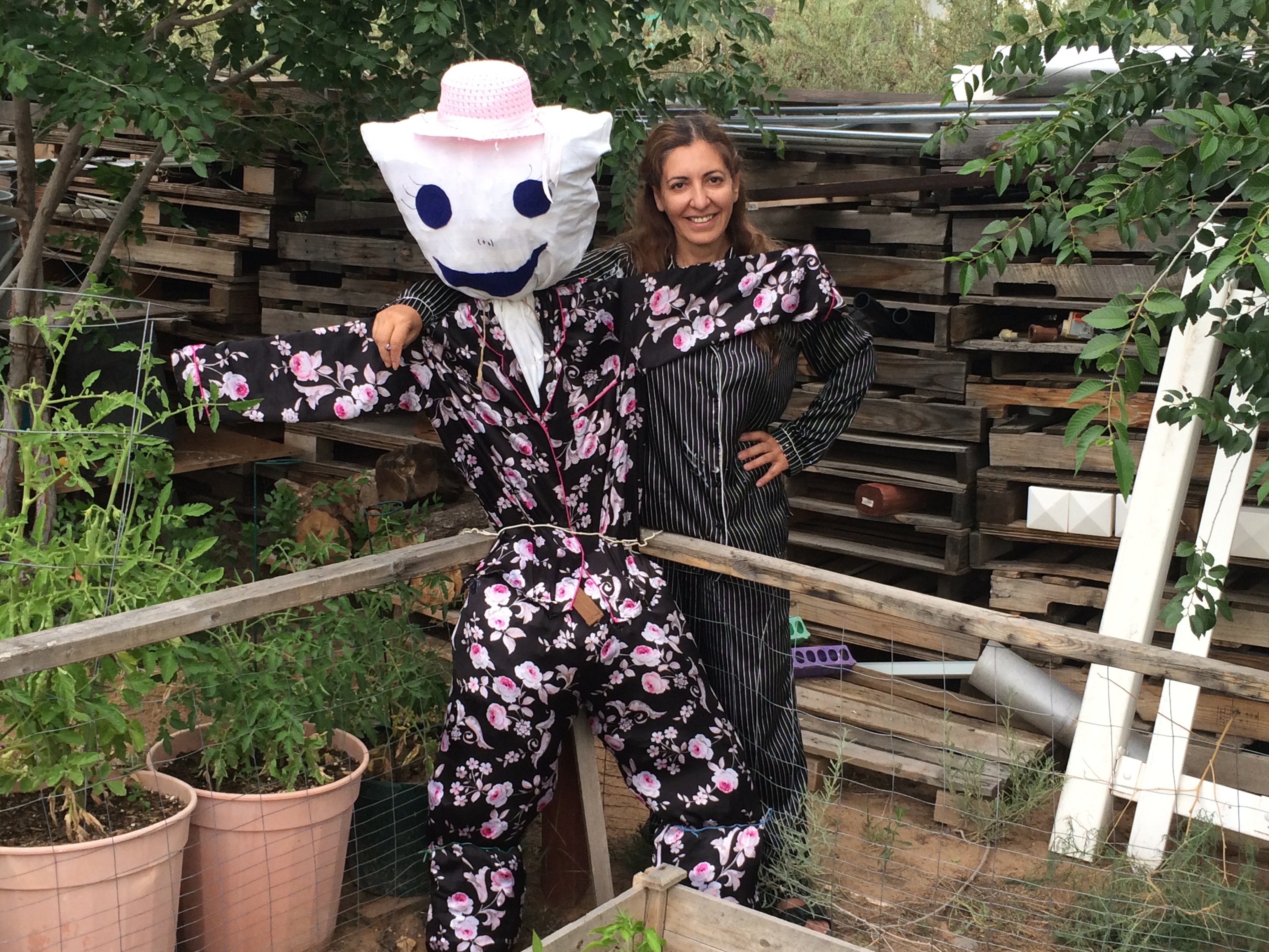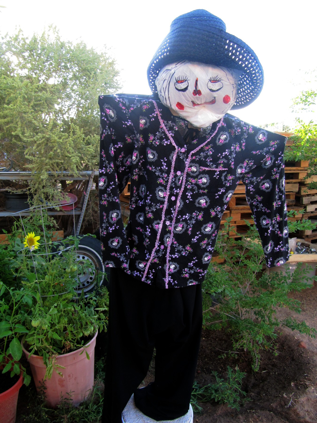 So there I go: I started gathering ideas, materials, old rags, old newspapers, and some hay. In a matter of hours, I had a very elegant and good looking scarecrow, overlooking my garden. I decided it wasn’t scary enough but seemed very real and I like it.