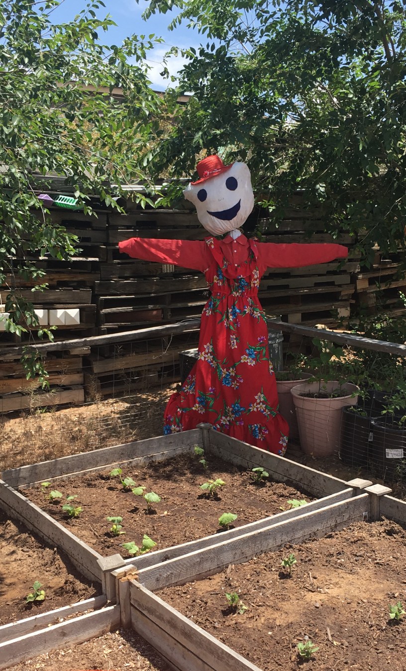 Finally, I decided to try a scarecrow. At the beginning I was a little skeptical, I did not understand how a static human figure was going to fool those little devils, and scare them away my vegetable crops. Then I decided that, even if didn’t work, it will still make a pretty fall decoration for the garden, and I will keep looking for other ways to protect my peppers and pumpkins.