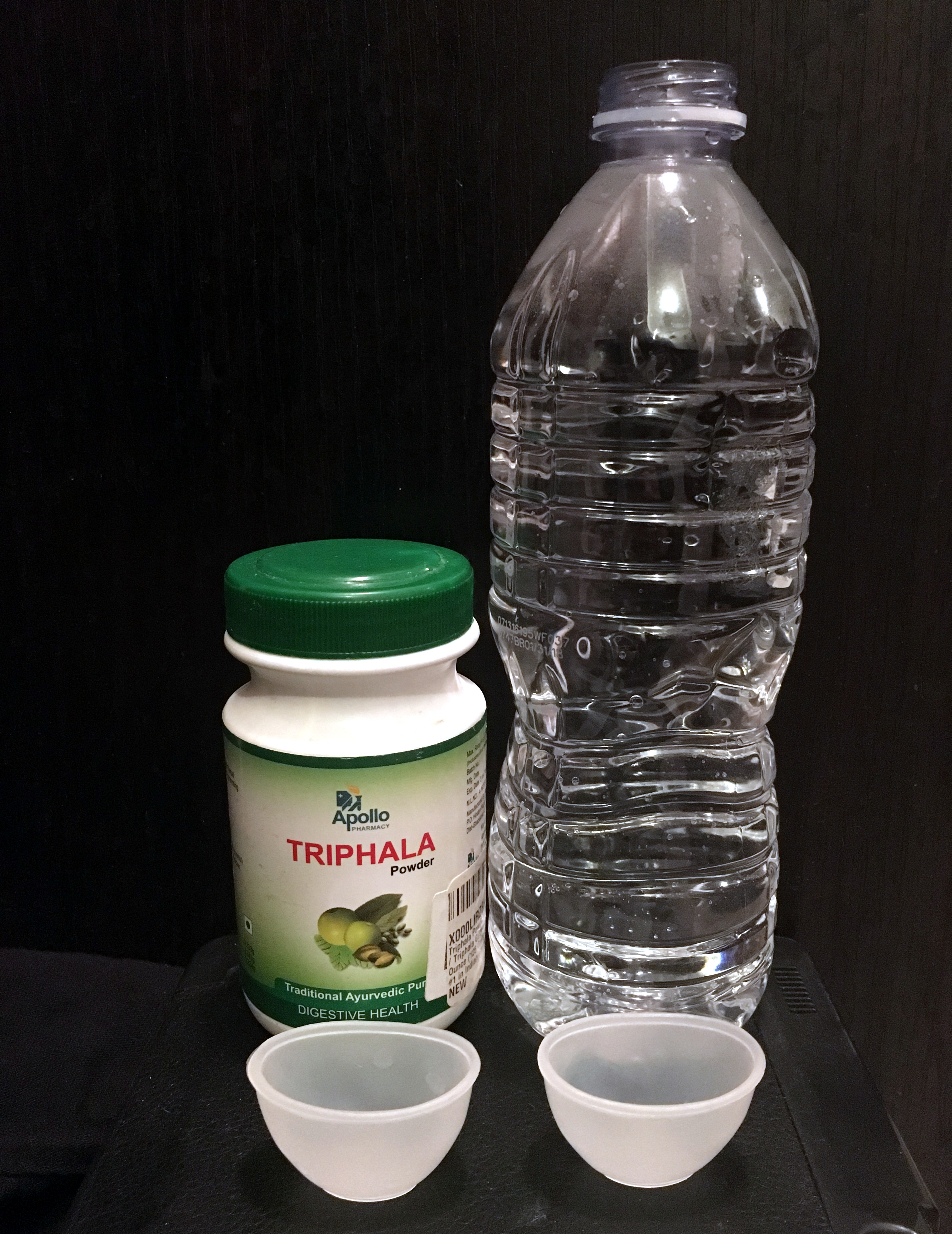 - Let it sit overnight, to settle any sediment from the triphala powder.