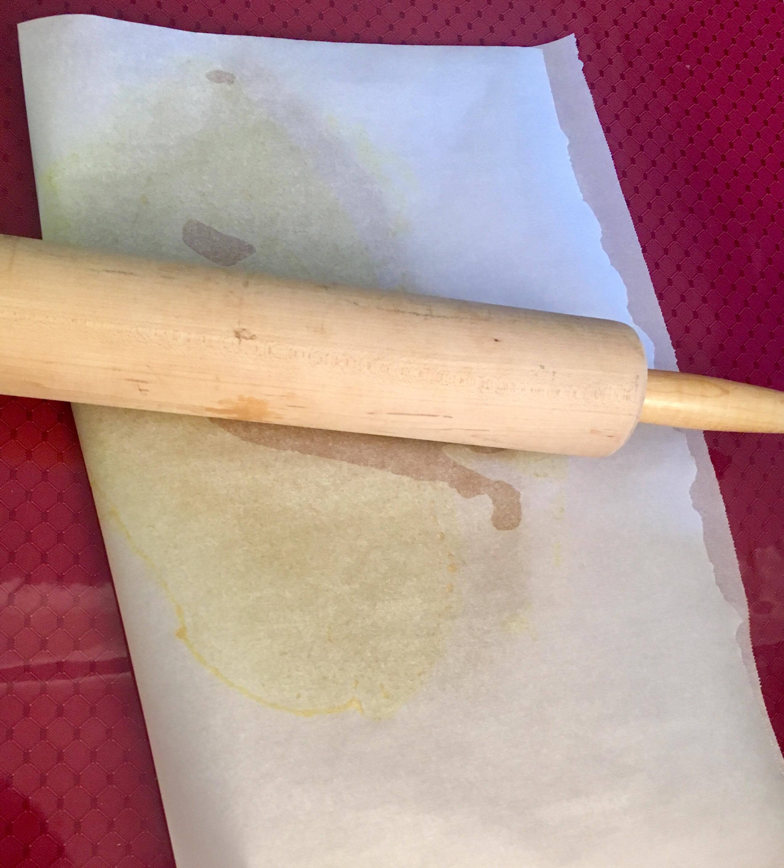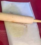 - Once it becomes hard, place the dough in a folded parchment paper and extend it.