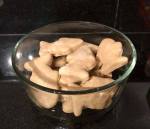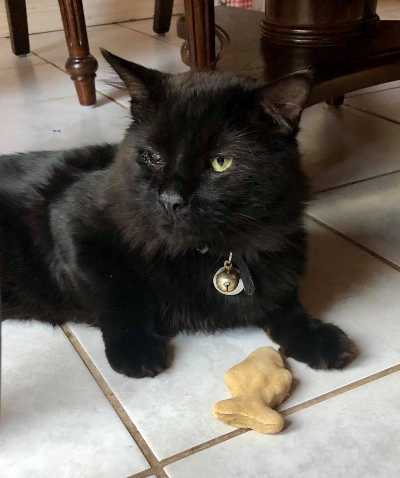 Kelsey enjoying his tuna-oats biscuits. Tuna fish-oats biscuits are all-natural healthy treats for cats. Shape with cookie cutters. Bake at 180F approximately 25 minutes.