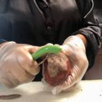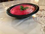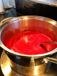 - Peel the beets and ginger using gloves (or you will end up with stained hands from the beet’s juice). Cut them in 1-inch pieces, put them in a pan with 2 cups of the vegetable stock, and simmer at low heat.