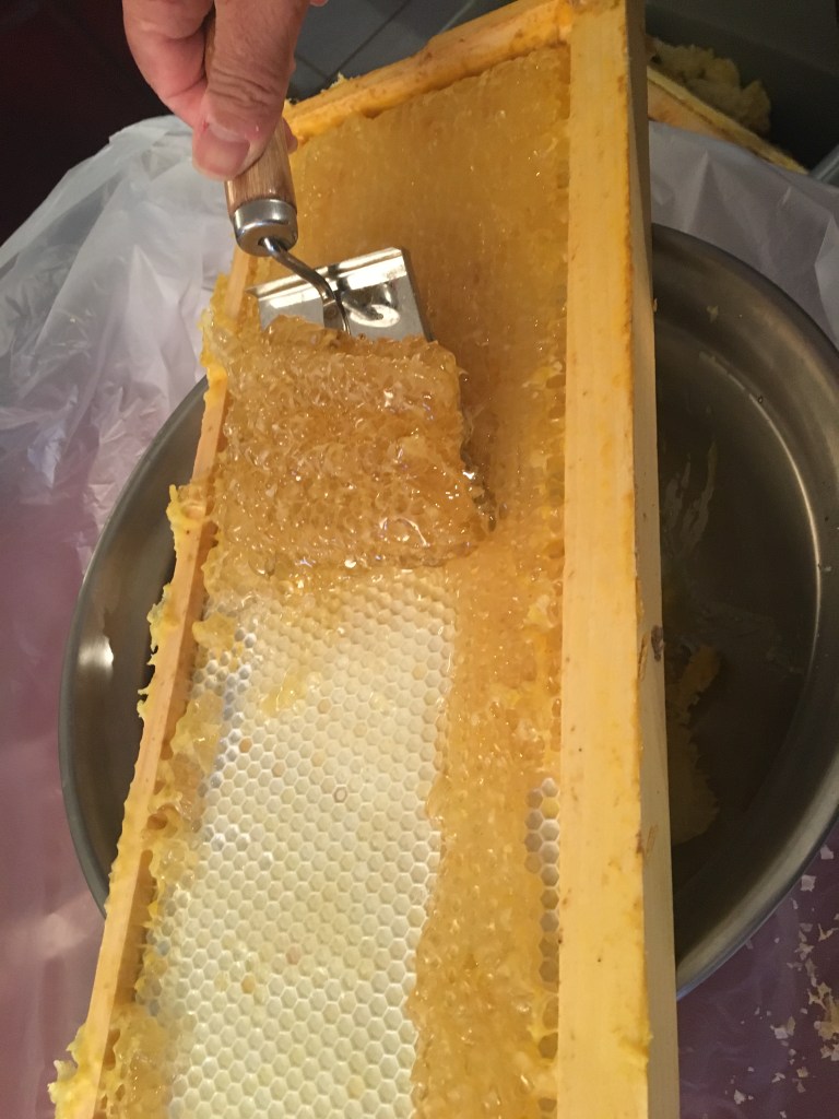 Extracting honey from a frame.