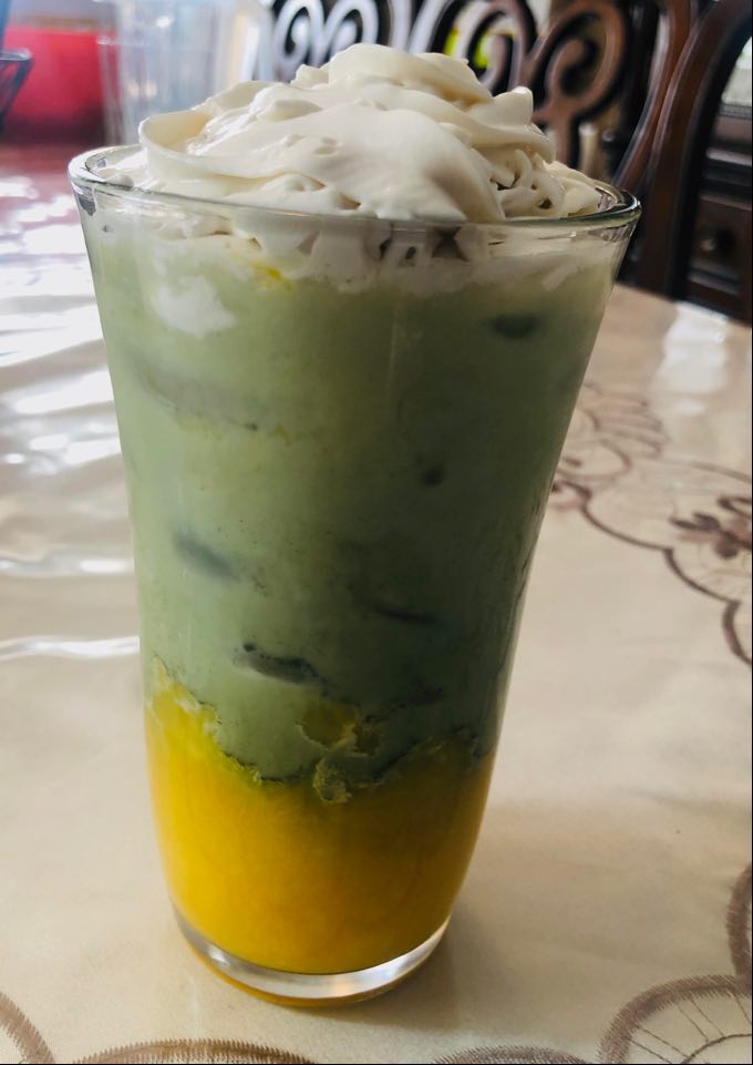 7. Pour into cup. garnish with whipped cream, mint or a slice of mango.