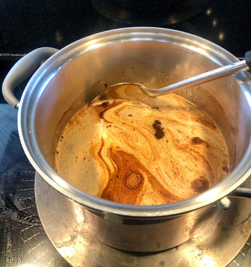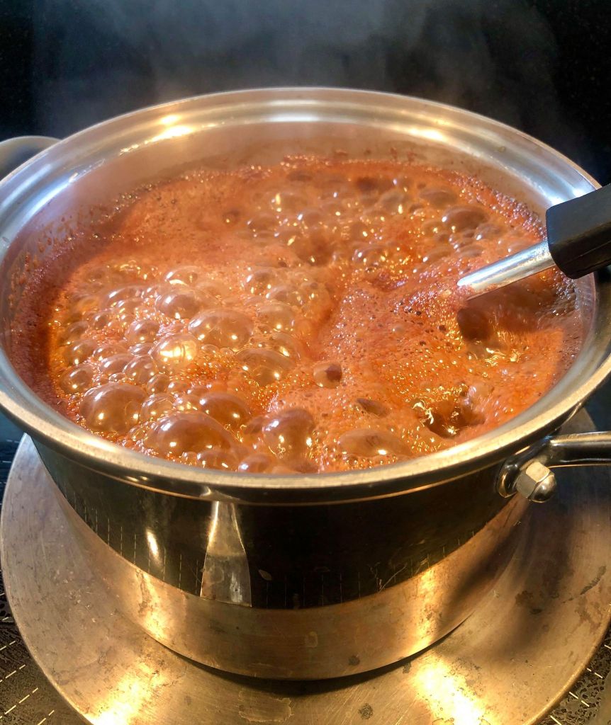 - Heat for 5 minutes, stirring constantly until all ingredients dissolve and blend.
