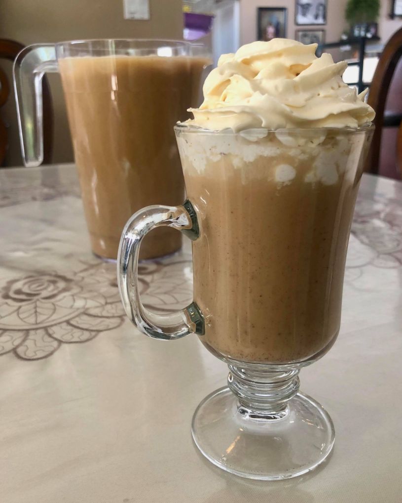 - Serve in cups, garnish with a stick of cinnamon or whipped cream.